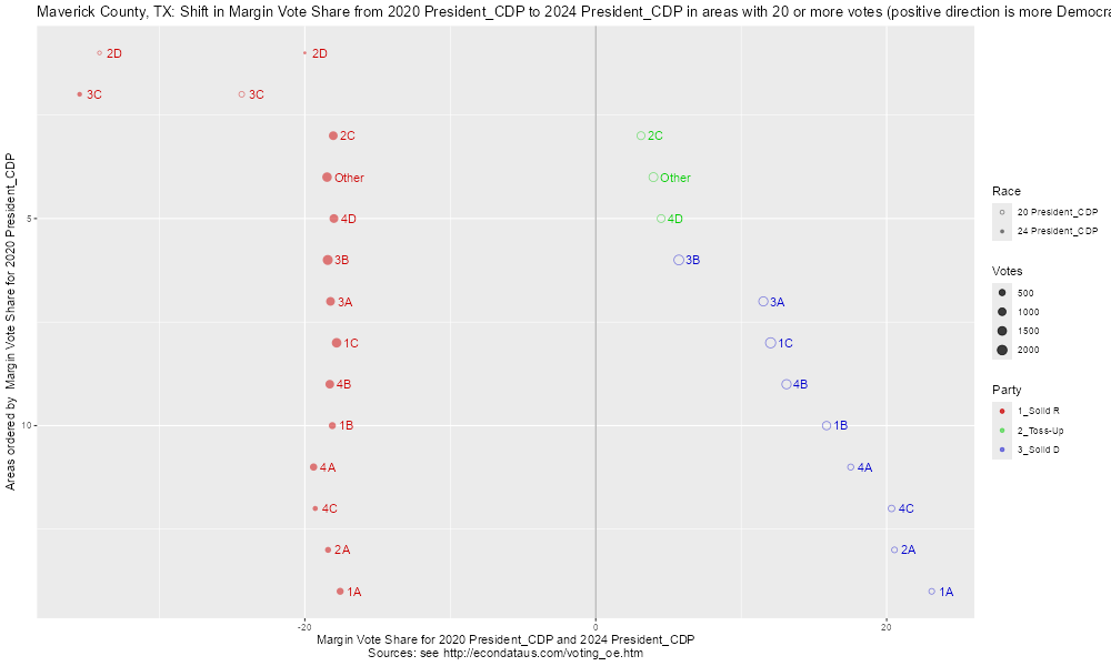 Maverick County, TX: Shift in Margin Votes from 2020 President_CDP to 2024 President_CDP (Count)